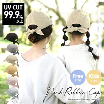 【キャップ キッズ レディース】 春夏 バックリボン メール便送料無料 UVカット 親子 ペア お揃い ママ おそろい リボンキャップ 可愛い かわいい おしゃれ コットン 綿100% 無地 春 夏 帽子 女性 女の子 【Back Ribbon Cotton Cap】