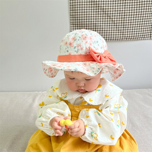 ベビー キッズ 帽子 女の子 洗える ハット バケットハット 綿 リボン レース 花柄 総柄 総柄 かわいい 紫外線対策 日よけ キャップ つば広 ゴム付き 薄手 日焼け防止 赤ちゃん 子供 女児 子ども 公園 水遊び お出かけ 春用 夏小物 2〜5歳