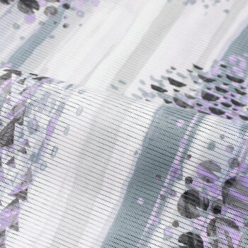 同じく淡い藤色やグレイッシュなこげ茶色の抽象的な文様。