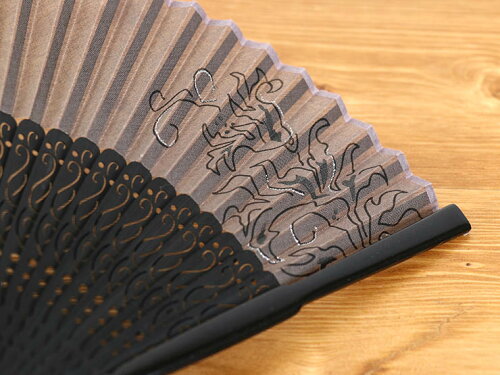 揺れるチャームと美しい曲線で描かれたデザインがエレガントで魅力的な扇子です。