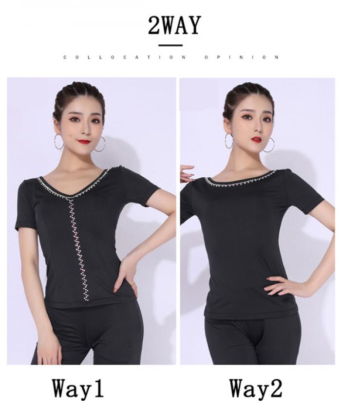 社交ダンス トップス ダンスウェア 半袖 袖あり 2way ストーン飾り キラキラ レディース 社交ダンス衣装 競技着 レッスン 練習着 ラテンダンス モダンダンス ブラック 黒 ダンス衣装 上着 ワルツ チャチャチャ ラテン ステージ 衣装 dm039d4d4w7/代引き不可