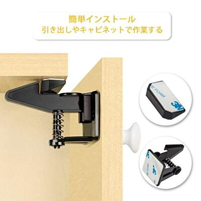 しっかりとロックしてくれる仕組みのため、元気な赤ちゃんの思わぬ事故を、未然に防ぎます!・【簡単に取り付け】設置したい位置をキレイに拭いて、シールを取り外して、引き出しに粘着してから、力を入れて45秒ぐらい押して、しっかりドアに固定されます。