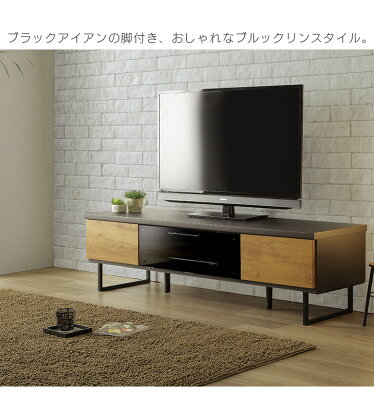 テレビ台 テレビボード 幅145cm ローボード ロータイプ AV収納 リビングボード リビング収納 ナチュラル ブラウン 木製 木製収納 おしゃれ ブルックリン ブラックアイアン フラップ扉 強化ガラス フルオープンレール 引き出し付き