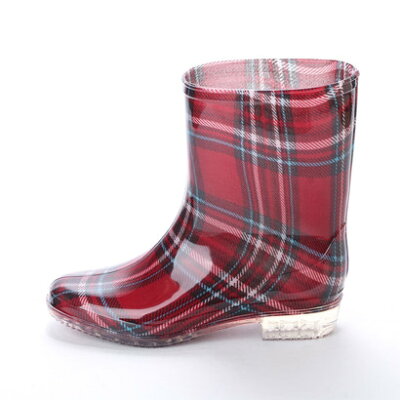 エンジェルフィット Angel fit レディース レインブーツ レイン ショート ミドル ブーツ 完全防水 一体成型 長靴 レッドチェック柄 af_15030 (RED/CHECK)