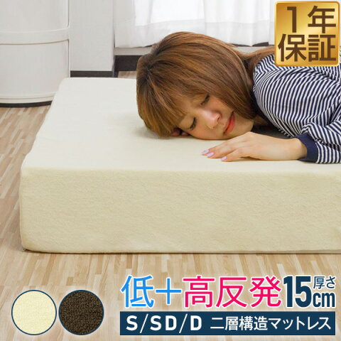 マットレス シングル 低反発 15cm 2層 両面 低反発マットレス 5cm 高反発マットレス 10cm 低反発マット 高反発マット 敷布団 敷き布団 寝具 マットレス 厚さ15cm S 低反発ウレタン 高反発ウレタン 洗えるカバー インテリア 1年保証 ★[送料無料][あす楽]