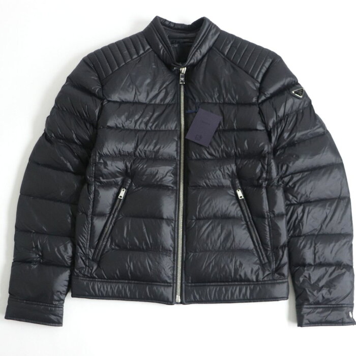 未使用品▽2021年製 プラダ SGB608 三角プレート/トライアングルロゴ スタンドカラー ダウンジャケット 黒 48 正規品 ハンガー・タグ付き【中古】