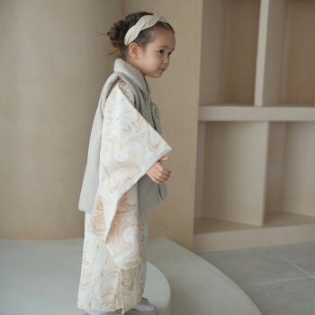【25%OFF】七五三 着物 3歳 被布 セット ひよこ商店 88cm-105cm前後 七五三祝着 ニュアンスマーブル 着物セット 販売 アイボリー系 子供 kids ベージュ クリーム 着物 被布コート カチューシャ 巾着 草履 足袋 ヘリンボーン ツイード風 三歳 三才 3才 753 9点セット