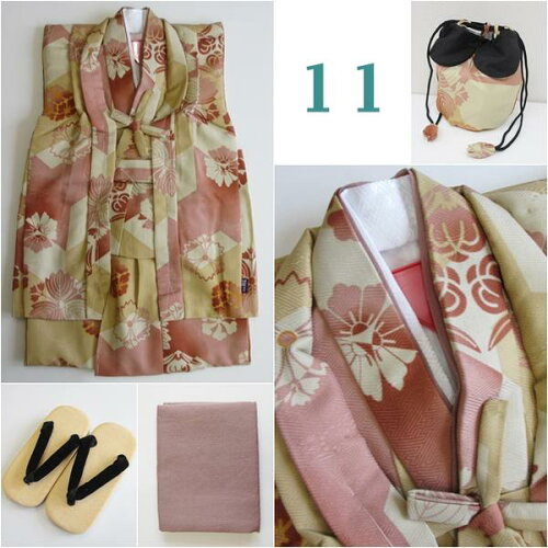 【セット内容】着物・羽織・長襦袢・兵児帯・巾着・草履 ※腰紐はきものと長襦袢に縫い付けてあります。