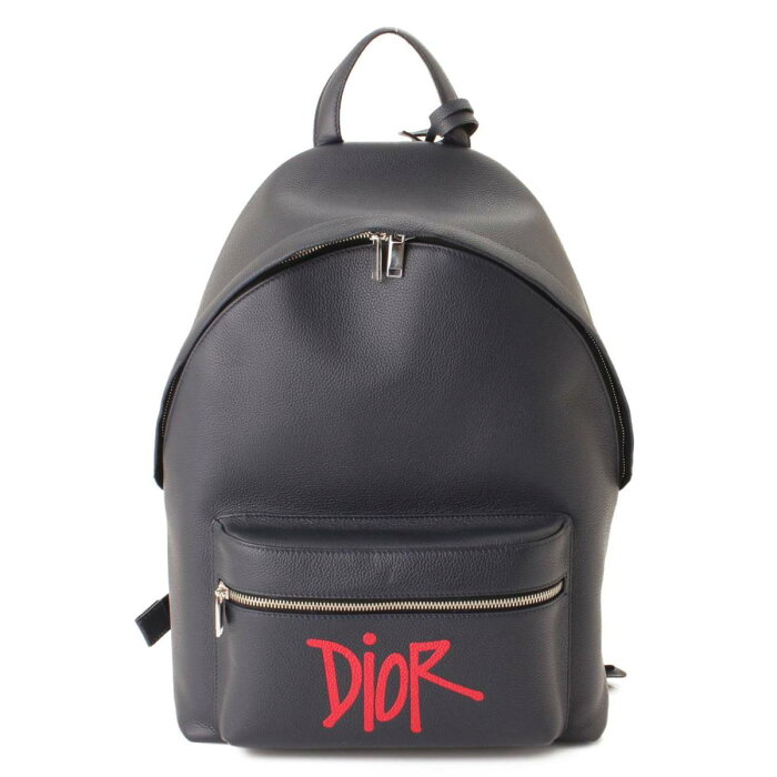 【ディオール】DIOR ディオール×ショーン・ステューシー カーフスキン バックパック リュック ネイビー 未使用【中古】【鑑定済・正規品保証】161061