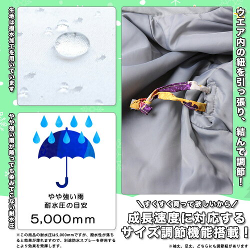 ●内側にある紐で袖丈と股下の長さの調整が可能な、お子様に嬉しい仕様。