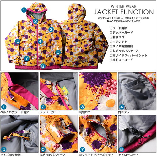 ニーマのスキースーツ! ●雪や雨・風の侵入を防ぎ快適なコンディションを持続的にキープする防水性の高い機能素材を使用!耐水圧5000mm。