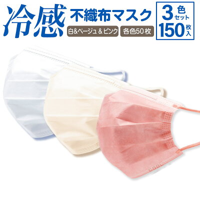 冷感マスク 冷感 不織布 マスク ホワイト&ベージュ&ピンクセット 150枚 (各色50枚) 高機能 99%カット 普通サイズ 使い捨て 3層構造 非医療用 接触冷感 ひんやり 冷たい クール 男性 女性 毛羽立たない 夏用 涼しい